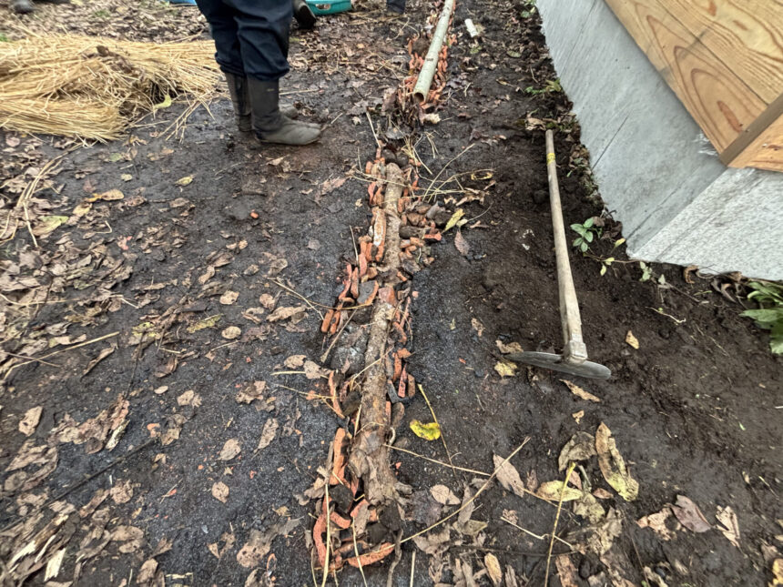 また、屋根から落ちてくる雨水が地面に落ちて土が流入していく問題もあったので、雨落ち部分の環境改善も図りました。