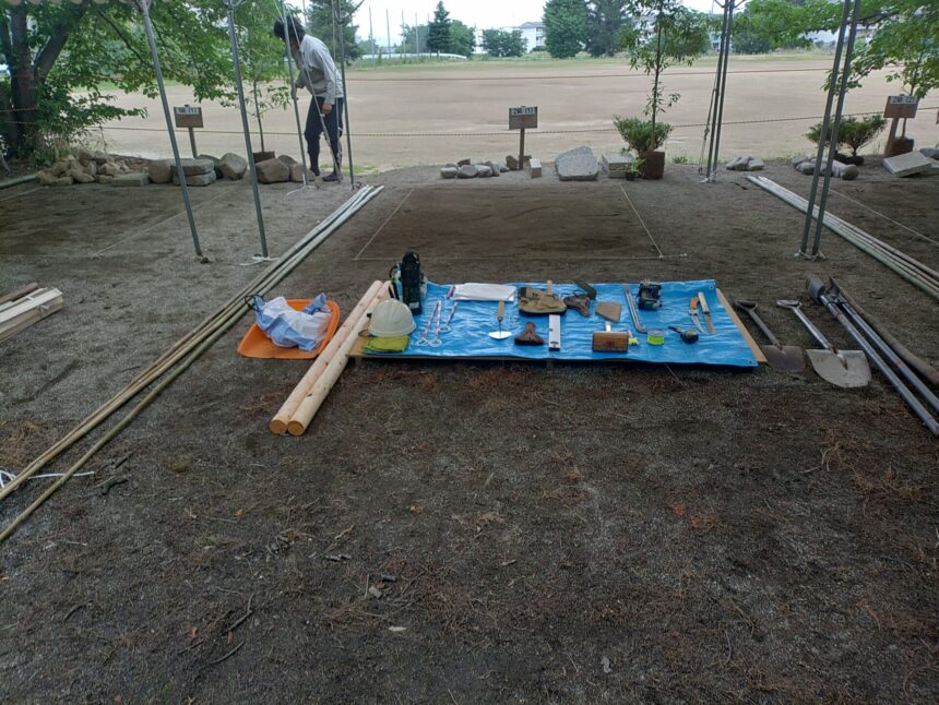 【整地したフィールドと庭づくりに使う道具】