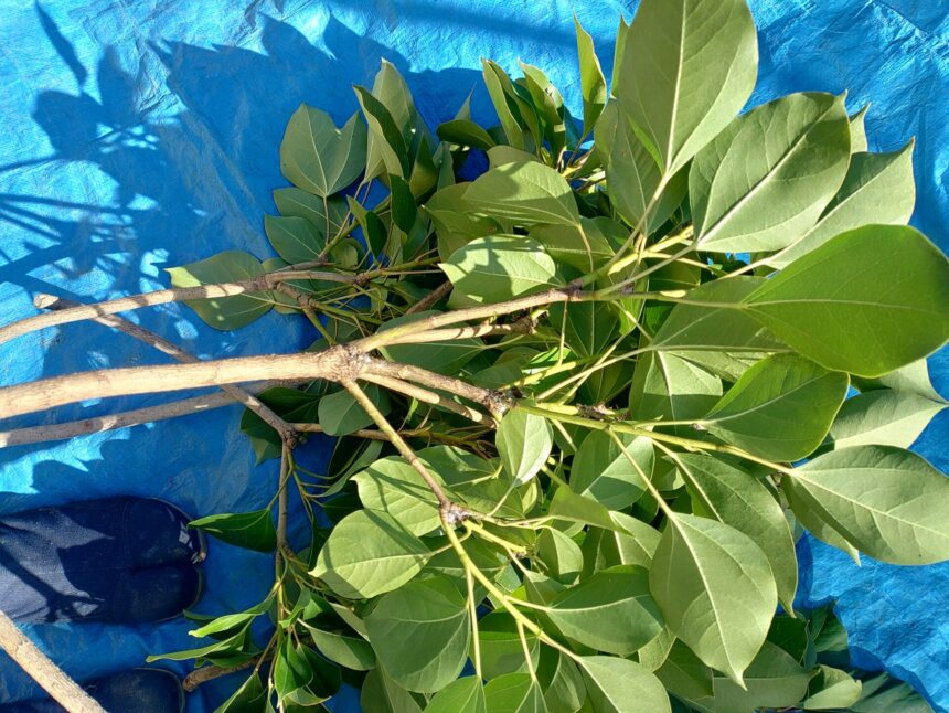 樹木の判断試験は実や花が付いていない枝葉を切り取り一輪挿しに15本分机に置かれたものを一定時間間隔を空けて自身が動いて答えていく試験です。一応115種の中からの出題ですが今回の試験会場である松本技術専門校周りで見かける樹木が多く出題されていた印象があります。
